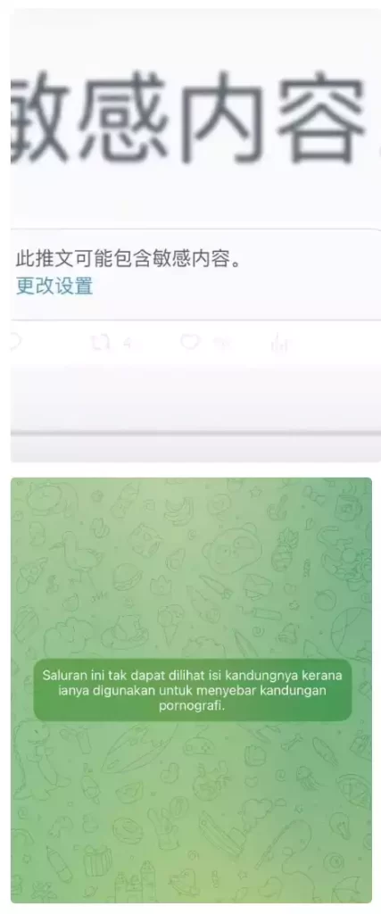 5.X(原twitter)和Telegram解除敏感限制教程 *注意:Tg电报为印度尼西亚(印尼+62)的号码无法解此限制,没有此选项